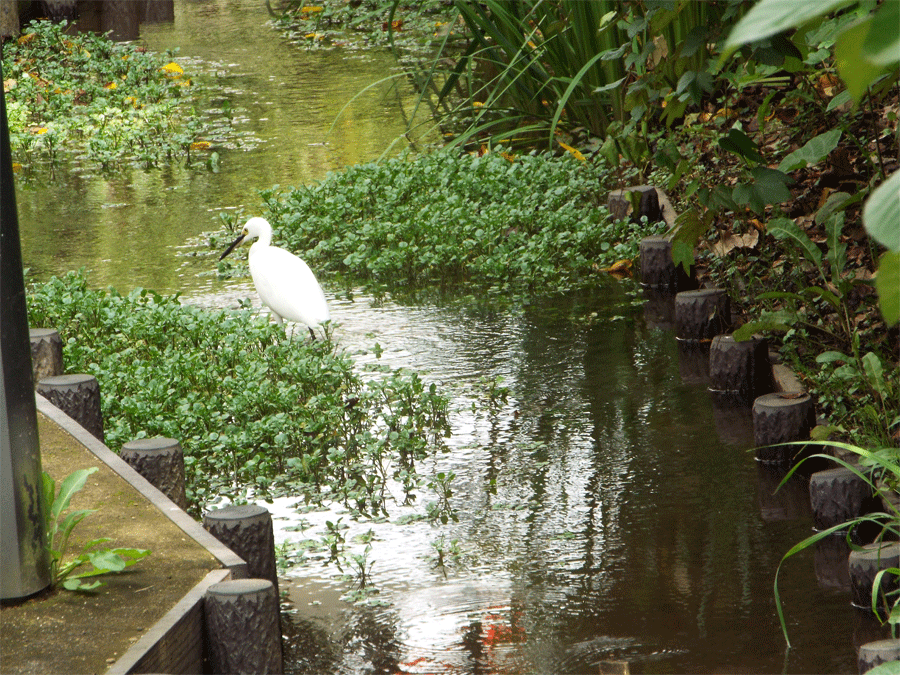 鷺は川面を見てられない人間が気に成って、土手の道は未舗装で草ぼうぼう。