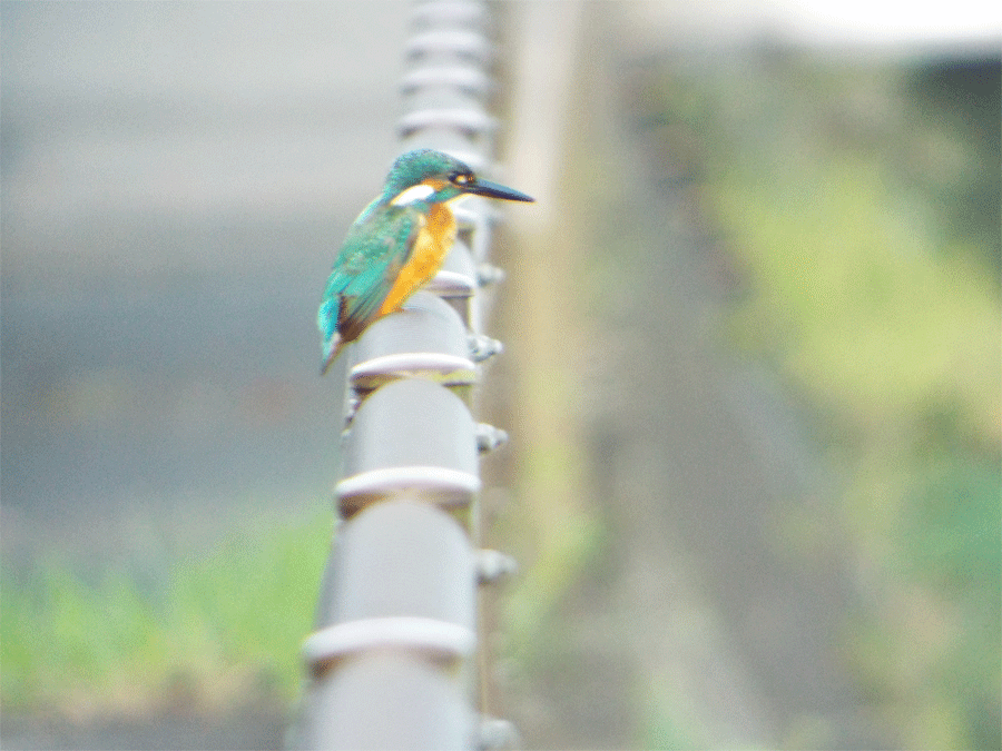 並木の辺り、青いすずめかと思いきや、かわせみ。驚いた、何とか望遠でパチリ。