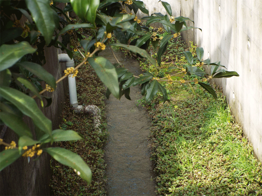 牡丹園からの小川に蓋をした、かなり深い為か、その暗渠の上の流水公園