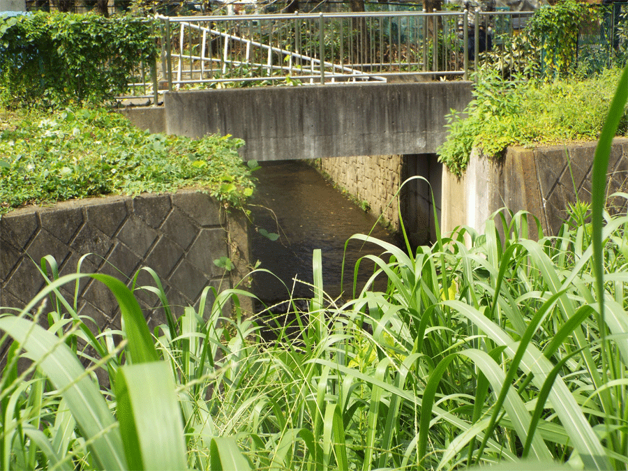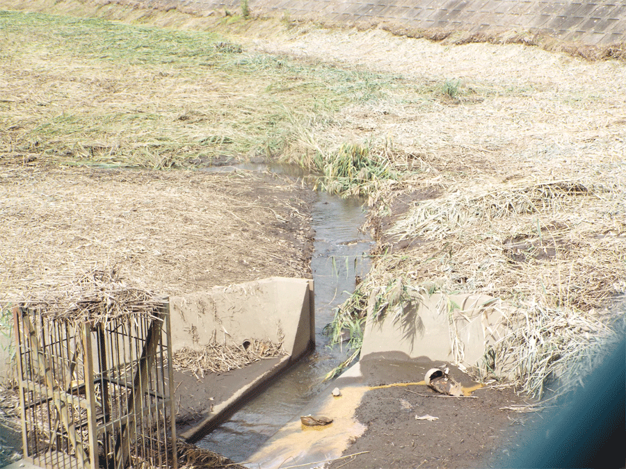 最初の流れ、周りの田んぼを潤す。鶴見川の名板、間違いなく鶴見川