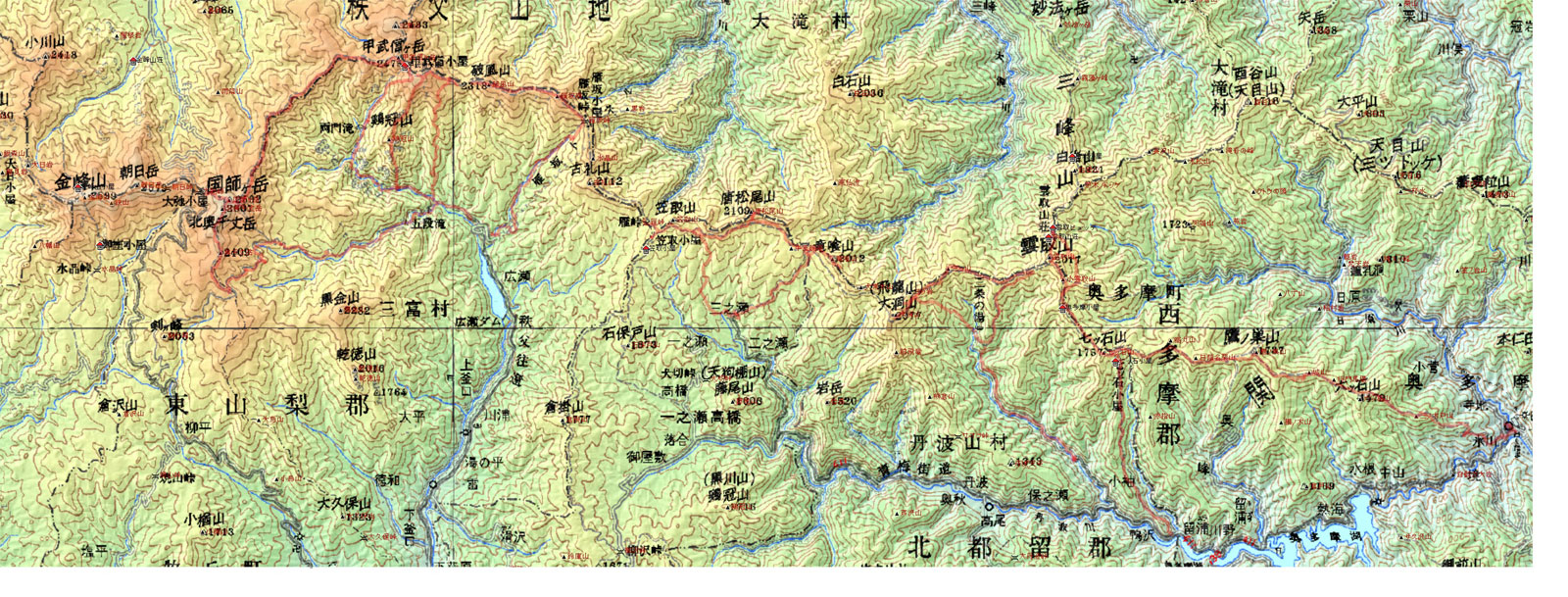 大峠、ゲートは開いて舗装路、20号線、大月の先で真木温泉を目指して右折、分かりずらい