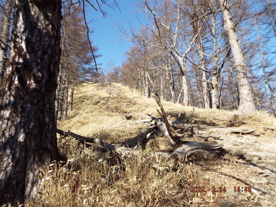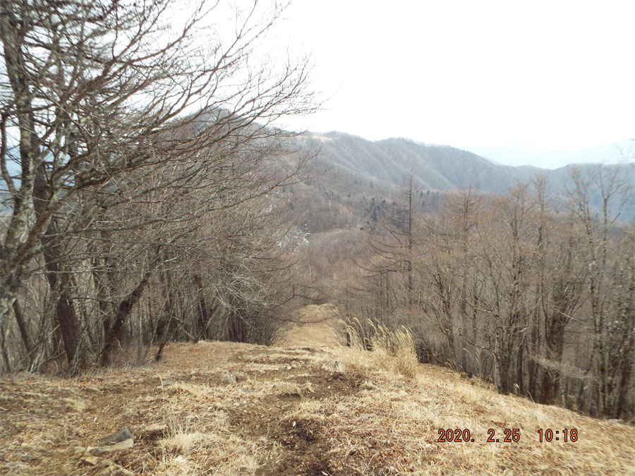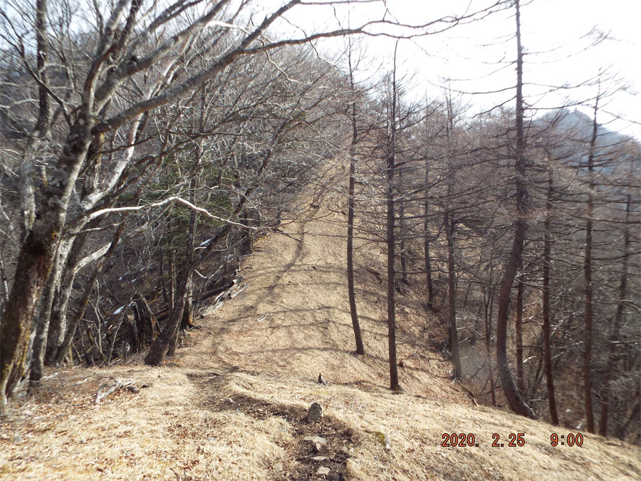 腹摺り山から1時間ちょいかかって、姥子山、狭い尾根ながら富士山側は絶壁