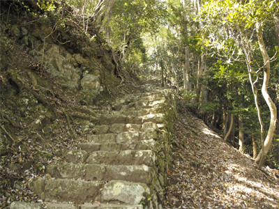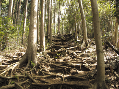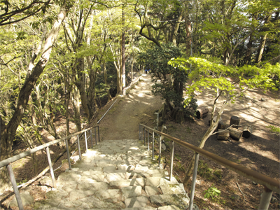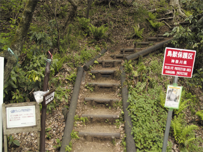 阿夫利神社の男道を下るが、大変な下り階段の連続、こけたら大けが間違いなし。