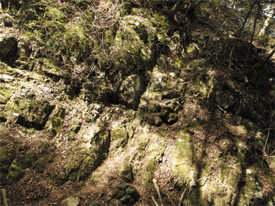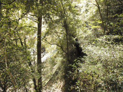 登山道で唯一のクサリ場が有った。神社から二重滝から男坂を下る、これが最大の難所だった