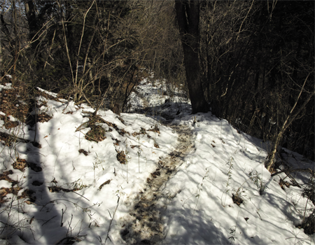 二日前の降雪が消えずに残りなんちゃって雪山が楽しめる。