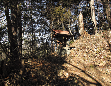 5人組とすれ違う、へこんだ道の両側に祠、ゆわれの看板は無い。