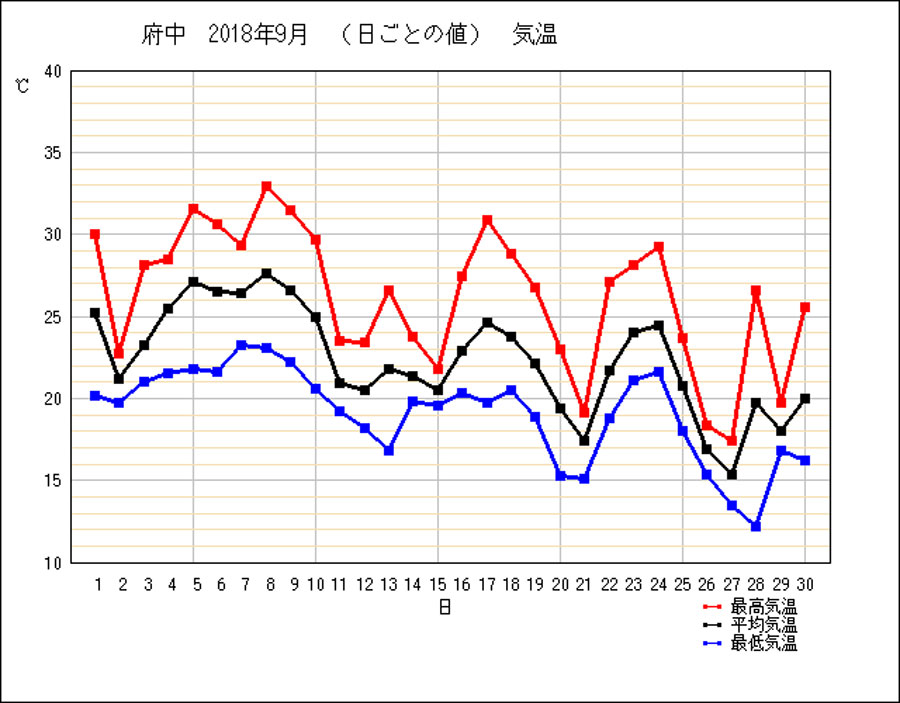 暑さ、寒さも彼岸まで、昔の人は言いました。2週目を過ぎるとさすがに35度は無くなるが、天気が安定しない、