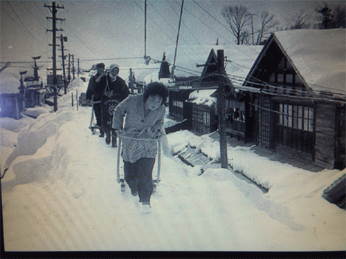 成り返って来れない。家の中の戸が屋根の雪の重さで押されて動きが悪くなると雪下ろしの合図