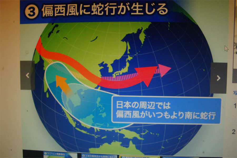 今年はラニーニァが現実となり大雪が降って大変な事に、わずか0.5℃の海水温の低さが原因