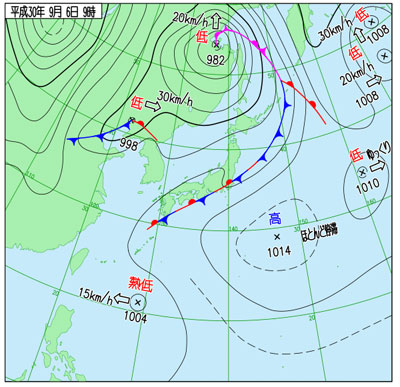 9月の17,18,19日は降水量がほぼゼロ、天気図の前線が日本から離れている日だ。